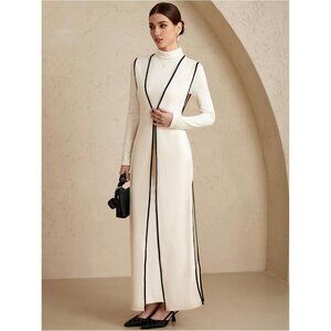 Features: This chic set includes a ribbed knit maxi turtleneck dress with contrast trim, long sleeves, and a bodycon fit, plus a sleeveless V-neck side slit vest. Made of soft, skin-friendly fabric with slight stretch for all-day comfort. Perfect for dressing up or down.