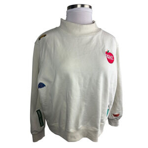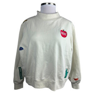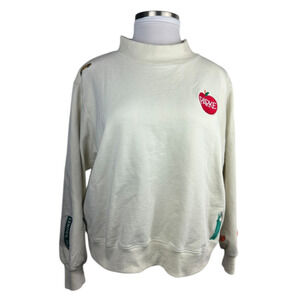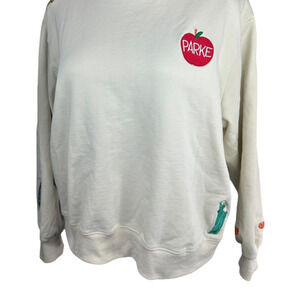 This PARKE NYC embroidered sweatshirt in size L/XL offers a relaxed, oversized fit with a cozy mock-neck design. Crafted in a soft off white color, it features multiple New York-themed embroidered icons including an apple front patch, sleeve details, and a “Central Parke” patch-giving it a unique, collectible look.