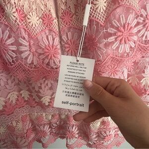 NWT Self-Portrait Dress Stripe Guipure Off-The-Shoulder Mini in Pink