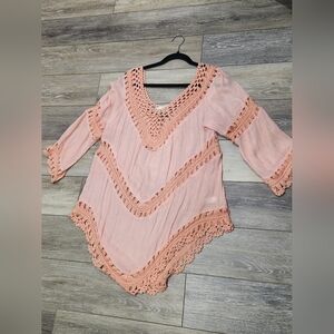 Boston Proper Coral Crochet Accent Tunic Size Xlarge