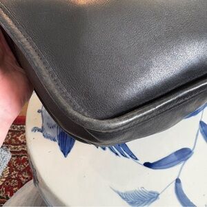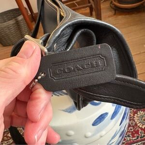 Vintage Coach black leather Janice Legacy bag, number 9950, hardware is nickel. Bag is in good used condition with last three photos showing wear appropriate for age. Approximate measurements L 9“ x W 4“ x H 7“ strap 18-21” and may be doubled for shoulder wear.