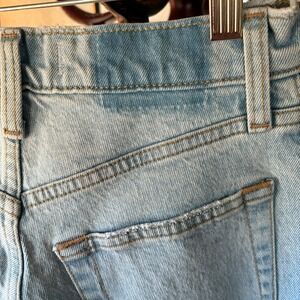 Abercrombie & Fitch 90s Straight jeans from the Curve Love line, featuring an ultra high rise and a straight leg silhouette. Designed with a center front seam down each leg and front ankle slit openings for a modern, elevated look. Structured denim with a flattering fit through the waist and hips.