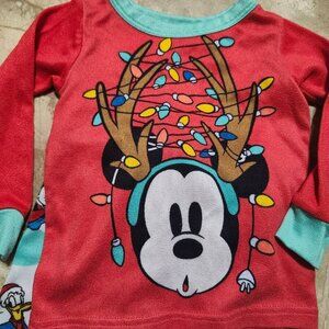 Disney Infant 18M Mickey Mouse Christmas Pajama Set Red White 2-Piece Sleepwear