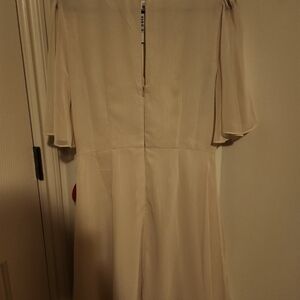 brand new with tags. beautiful light pink/ peach color with embroidery. polyester. tie back and hidden zipper.