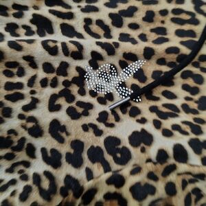 Chic leopard print hoodie with rhinestone logo. Eye-catching and trendy.