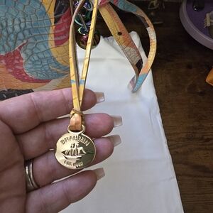 Colorful leather design with a unique patchwork pattern. Perfect for adding flair to any outfit. Stylish and functional. Dust bag, twilly and charm included