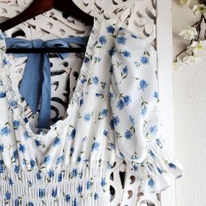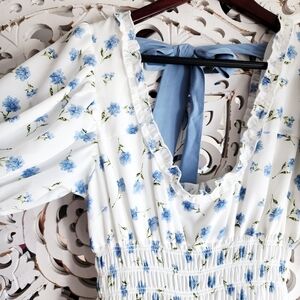 Sister Jane floral perennial maxi prairie style back bow tie tiered dress size MEDIUM