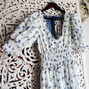 Sister Jane perennial tiered floral bow prairie style maxi dress Sz Mediun