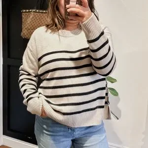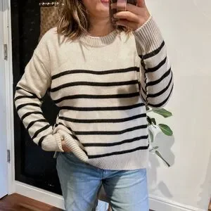 Vince 100% Cashmere Stripe Boxy Crew Sweater. Size S