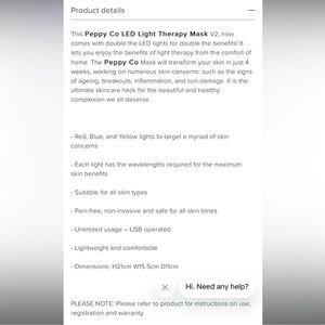 This mask is a great and affordable option for light therapy. Please note this requires a USB plug in. Cord is included. I used a USB wall adapter with this. One thing about this mask, it does not have an on and off switch. If it is plugged in it is on. There is a button on the side that changes the light color.