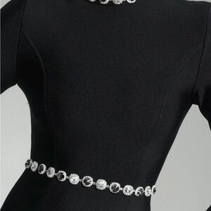 Step into sophistication with this elegant black mini dress, adorned with exquisite silver accents. Ideal for any event, this dress offers a perfect blend of style and grace.