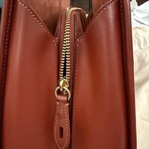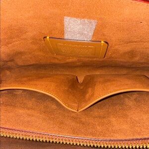 Style Number CE731 Measurements Length: 14.25" Height: 10.25" Width: 5.75" Materials Signature coated canvas and refined calf leather Fabric lining Handle Handles with 5" drop Strap Detachable strap with 21.5" drop for shoulder or crossbody wear Features Outside slip pocket Inside multifunction pocket Center zip compartment Fits a 13" laptop Four protective feet at base