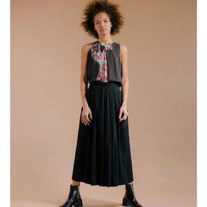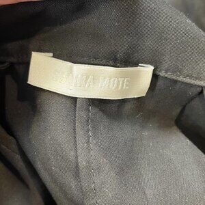 Shaina Mote's kendo-inspired Garendo Pant is an intricate culotte pant with front pleats and a single deep back pleat. Features angular side pockets with chrome side zippers and slide bar closure. A young designer living and working in Los Angeles, Shaina Mote creates sleek and transformable staples with multiple ways to wear in an effort to curb the mentality of fast fashion. Think: reversible pieces, and the option to tie clothing in various different ways. In doing so, this not only adds to the versatility of a piece, but promotes less waste on the whole. It doesn’t stop here, though. Working with family run businesses to encourage environmental responsibility, Shaina Mote’s clothing is composed mostly of locally sourced or dead-stock materials along with easily renewable plant based fibers. Feel good beautiful clothing - we think yes. DETAILS 56% Tencel, 44% Linen. Machine wash cold. Made in USA. MEASUREMENTS Length: 34in / 86.36cm Waist: 26in / 66.04cm