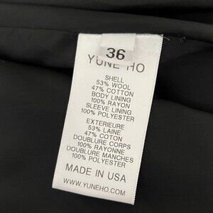 FEATURES NO COLLAR, HIDDEN BUTTON PLACKET, SIDE SLITS WITH BUTTON CLOSURE, SIDE POCKETS, WOOL BLEND.FULLY LINED. STUNNING JACKET