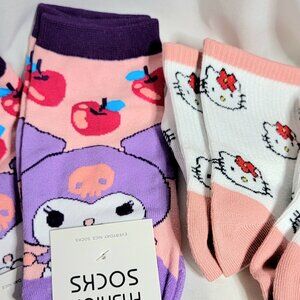 Kuromi Style & Hello Kitty Woman's Socks ~ 4 Pairs - NEW
