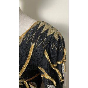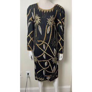 VINTAGE MANNEQUIN BEADED SEQUIN 80'S GLAM DRESS M