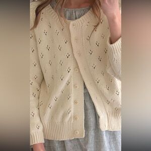 Gillian Stevens Mabel Pointelle Cardigan in Cream SMALL FLAW