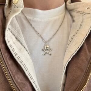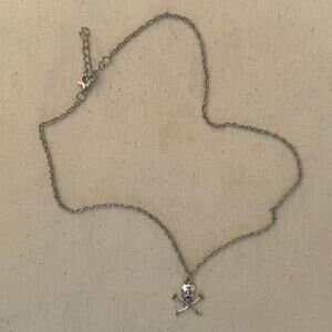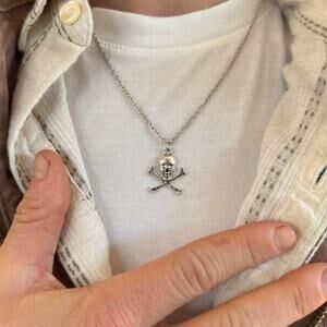 y2k 2000s vintage silver boneyard skull necklace