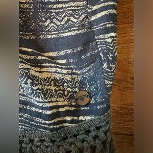 Great condition. One size. Blue and white design with fringe edges. Lightweight.