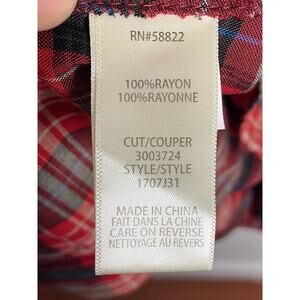 Max Studio Flannel Button Down Shirt Roll Tab Long Sleeve Plaid Red Black Size S