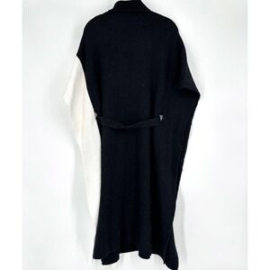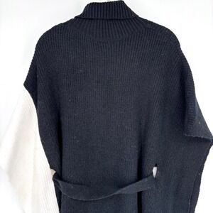 Maeve by Anthropologie colorblock poncho sweater dress a versatile wardrobe addition. This piece features a chic turtleneck design and a self-tie belt to cinch the waist. The dramatic contrast between the black and white panels creates a striking visual impact. Crafted with a blend of acrylic polyester and polyamide for a comfortable and durable wear.