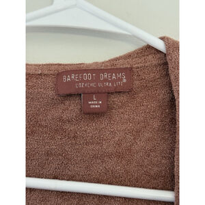 The Barefoot Dreams CozyChic Ultra Lite Seashore Hoodie Cardigan in size L is a stylish and comfortable sweater designed for women. Made with a soft and cozy material, this pink cardigan features a hood and a relaxed fit, making it perfect for lounging or casual outings. The dreamy and effortless style of Barefoot Dreams is reflected in this chic and versatile piece, adding a touch of luxury to any wardrobe.