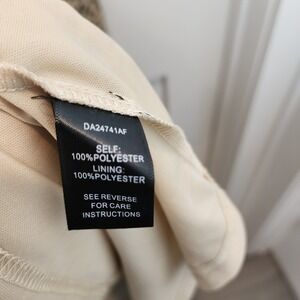 Material: 100% Polyester (Chiffon-style outer with full lining in bodice and skirt; sheer sleeves)