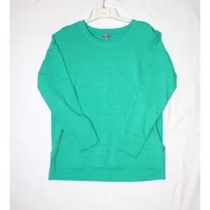 T By Talbots Long Sleeve Shirt Top Women's Teal Stretch Casual Beach UPF 50 Med