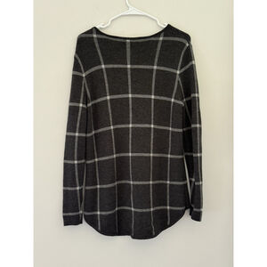 Athleta Merino Extra Fine Wool Dakota Windowpane Pullover Sweater Womens L Gray
