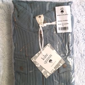 NWT 7Y Kate Quinn Long Sleeve Motorcycle Jacket Stormy Weather Blue Wide Rib
