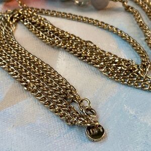 Vintage LOFT Necklace with double gold chain and clear, aqua, and gray glass & stone beads. (aventurine or calcedony?)