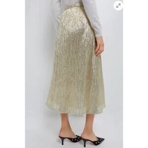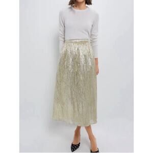 TUCKERNUCK Hyacinth House Gold Metallic Plisse Gloria Midi Skirt NWT Size Large
