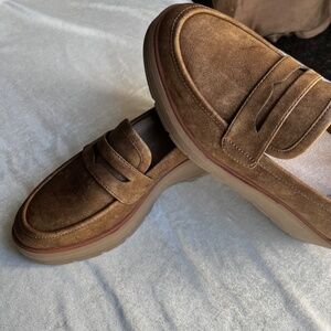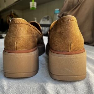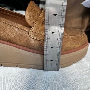 Dr. Scholl’s platform loafers, women’s size 10, color Tan. Back platform measures 2-inch and front platform measures 1.5 inch (see pics).