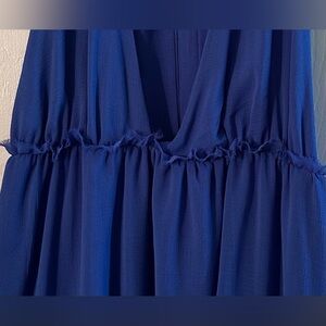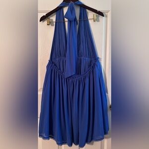 FREE PEOPLE XL Feminine Esme Mini Brilliant Blue Halter Chiffon Satin Strap SEXY