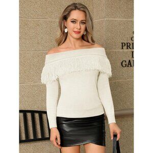 Women's Fringe Top Acrylic Polyester Nylon Slim Fit Off Shoulder Sweater — A trendy, versatile piece for chilly days.