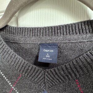 Gap Kids Boy's Large Size 10 Gray and Blue Argyle V-neck Sweater Preppy Academia