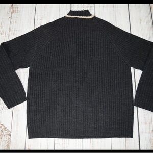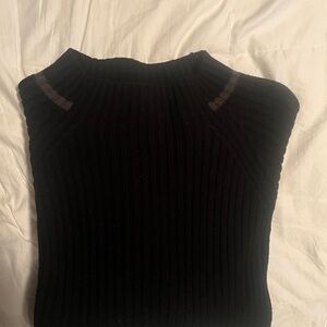 Elevate your wardrobe with this black ribbed crewneck sweater. Its versatile design makes it perfect for any occasion. This sweater is stylish, warm and comfortable.
