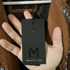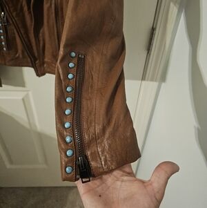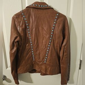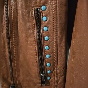 Maurtius NWT Leather Women's Turquoise Studded Leather Jacket Size S