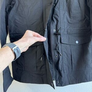 New without tags, The North Face Zoomie rain jacket in black. Waterproof. See photos for all features. Note: Stock photos show a gray jacket, but this jacket is black. Stock photos are included to better show the jacket's features.