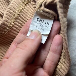SHEIN Tan Ribbed Blouse with Ruffled Sleeves