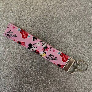 Holiday NWOT Valentine Mickey & Minnie Handmade Fabric Key Chain/Key Fob