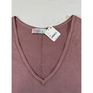 New with tags FP Beach by Free People women’s dress in a soft mauve / dusty rose tone. Easy, relaxed silhouette with a deep V-neckline and feminine ruffled short sleeves. Made from a lightweight, soft knit fabric designed for comfort and casual wear.