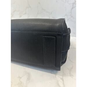 This Saint Laurent tote bag offers both style and functionality, crafted from durable black leather. It features a silver-tone padlock and a spacious interior, perfect for daily essentials. While it has some scuffs and interior marks, it retains its elegant appeal.
