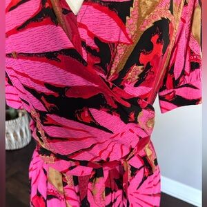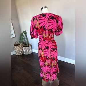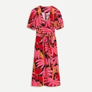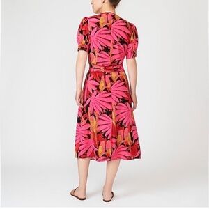 J. Crew Midi Dress Faux Wrap Pink Tropical Palm/Island Hawaiian Floral Print 14