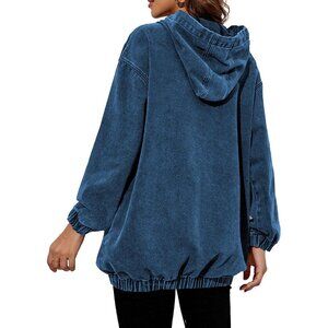 Features: This stylish denim hoodie is crafted from lightweight denim, blending the softness of a sweatshirt with the toughness of a jean jacket. It has a relaxed fit, hoodie with adjustable drawstrings, long sleeves with stretchy cuffs and hem, and handy front pockets. Perfect for layering or wearing solo for a trendy, laid-back look.
