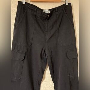 Zara Cargo Pants Women Black 100% Cotton Straight Leg Utility Pockets Size 12