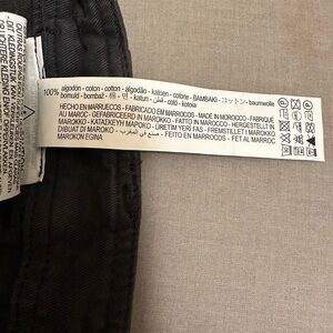 Previously owned Zara women cargo pants in good condition. The material is 100% cotton. They have front side pockets, two back pockets, and two pockets on legs. Approximate measurements : waist is 17.25inches, rise is 12.5 inches, and inseam is 33 inches.