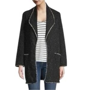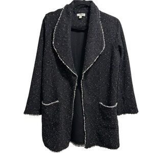 Studio Max black white tweed open front knit blazer cardigan with fringed edges