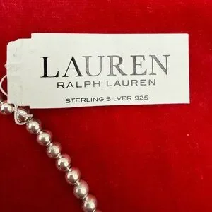 Lauren Ralph Lauren Logo Padlock Charm Beaded Collar Necklace Sterling Silver