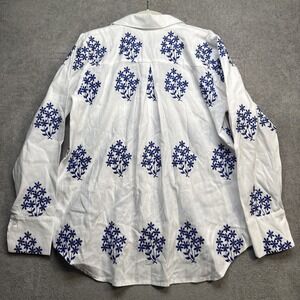 Handmade Ukraine Blue White Embroidered Vyshyvanka Button Up Blouse Medium